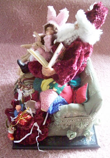 It seems that it took F O R E V E R to finish this piece but I have to admit that a good bit of work went into designing and making it. Making the PawPaw chair, quilting the tiny blanket, making the ottoman, Li'l Miss LuLu and Santa. Like I said....a good bit of work!! I'm going to be putting this one in my Etsy shop and if you are interested in adopting Santa and LuLu AND do it by Friday the 7th then you can get FREE shipping.